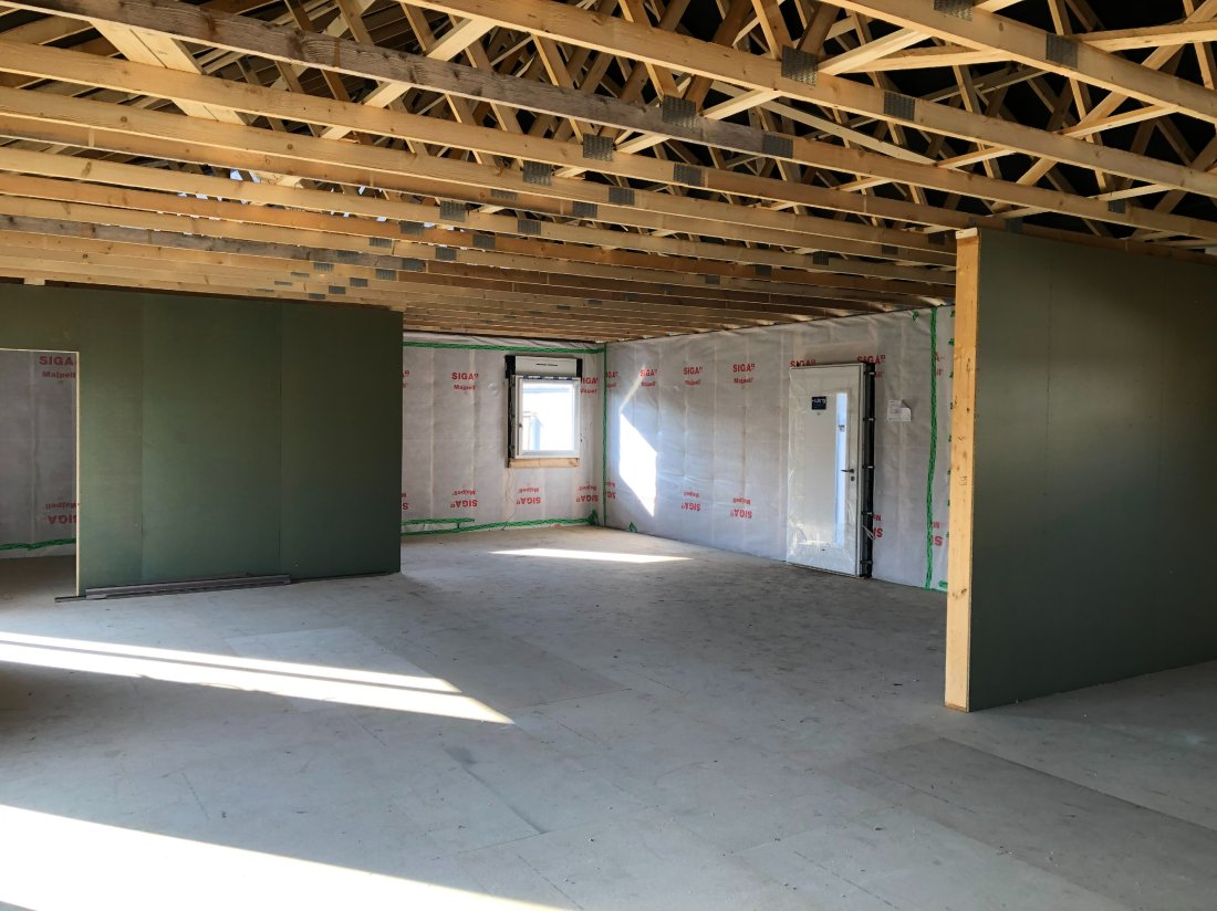 Le principal défi de ce chantier résidait dans la nécessité de concilier exigence environnementale, confort thermique et respect du budget du client. La volonté d’obtenir une classe d’énergie A impliquait une attention particulière à l’isolation et à la performance de l’enveloppe du bâtiment. Ainsi, nous avons opté pour un plancher bois isolé par laine soufflée, assurant une excellente protection contre les déperditions thermiques. Le choix du bardage en sapin autoclave garantit une longévité accrue face aux intempéries, tandis que les menuiseries en aluminium noir apportent modernité et robustesse à l’ensemble. Le tout, sans jamais négliger l’esthétique et la fonctionnalité de l’espace de vie.